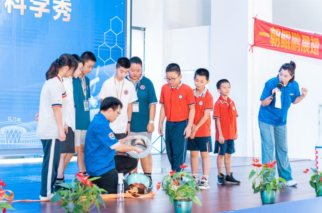 江门第一实验学校还准备了一场科普展示,让孩子们充当“小小讲解员”参与科学实验、讲解科学知识。