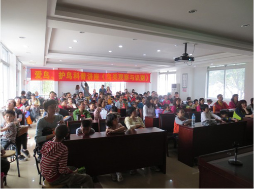 本次讲座向大家介绍了鸟类的种类、识别方法、生活习性、生态价值等,内容生动活泼,极大地调动学生们的兴趣及生态保护意识。一个学生表示:“原来有这么多漂亮的小鸟啊!我们要热爱它们。”