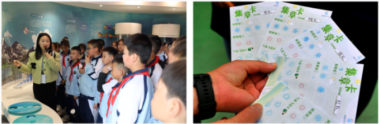 随后,学生分成五个小组开展活动,通过个人参与和团队合作来完成活动印章打卡。在现场工作人员指引下,同学们通过小组合作在各个活动点完成相应的答题任务,手持活动手册到工作人员处盖章,盖章后即完成一个活动任务,根据答题情况获得相应积分。在最后的气象飞花令活动中,进行气象诗句、歇后语大比拼,五组人轮流说一句气象相关的诗词、歇后语,让同学们进一步了解气象诗句、歇后语在生活中的应用。
