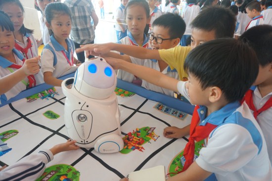 同学们都爱摸摸小优的头,深受同学们的喜爱,毕竟小优的脑袋可是蕴藏着大知识,上知天文,下知地理,而且还会和大家玩游戏哦!