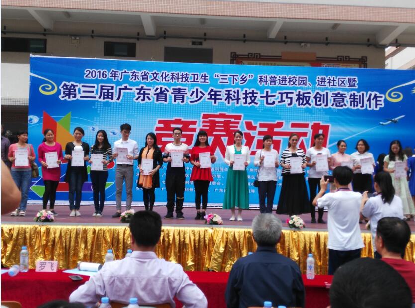 11月4日至11月6日,云浮市组织三支队伍参加了第三届广东省青少年科技七巧板创意制作竞赛载誉归来。新兴县实验中学代表队荣获高年级组一等奖;邓发小学代表队荣获高年级组一等奖、亲子组三等奖,赖紫健、廖木娇老师荣获“优秀辅导老师”称号。