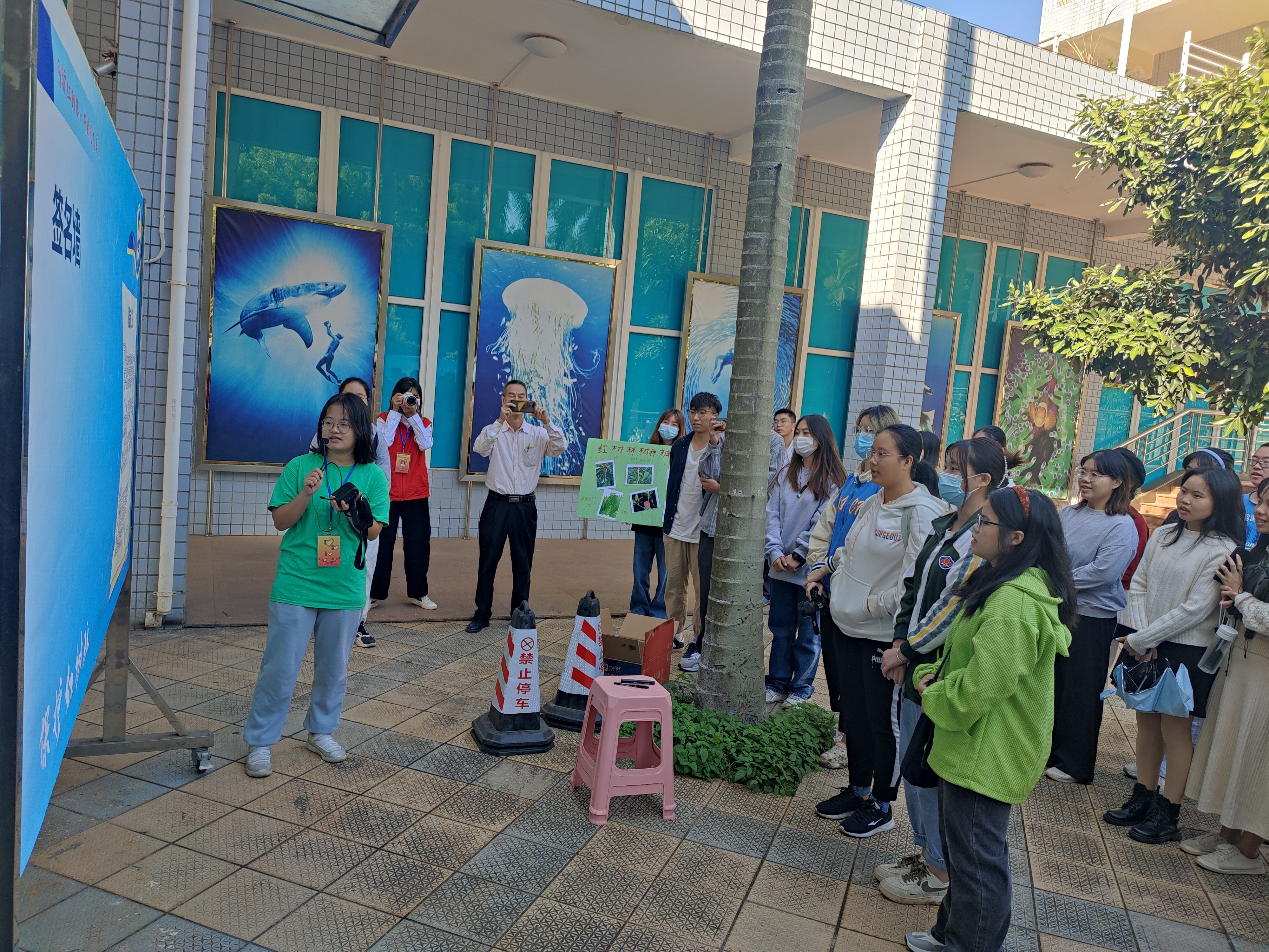 活动开始,广东海洋大学水生生物博物馆老师讲述了红树林生态系统的概况,对我国海洋生态乃至整个地球及人类的重要意义,并号召同学们一起为保护红树林贡献自己的力量。