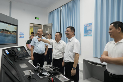 揭牌后,一行参观了科普教育基地的船舶操纵模拟器、轮机模拟器、船舶模型室。