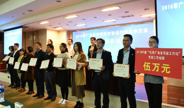 会上,由中山市科协组织推荐的“省科协海智计划中山留学人员创业园工作站”被评为2018年“优秀广东省海智工作站”,站点代表现场领取了获奖证书并获得5万元工作经费奖励。