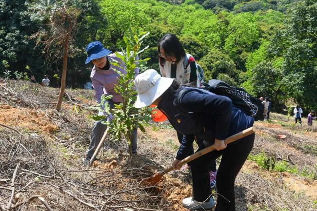 在江浦街道湴塱径植绿点,大家干劲十足、团结协作、分工有序,在认真听取园林工作人员讲解苗木特性以及种植方法技巧后,有的挥锹铲土、扶树正苗,有的培土围堰、提水浇灌,合力种下了130棵土沉香、油茶、澳洲坚果,打造了一片生机盎然的“科协林”,一排排新栽种的苗木迎风挺立。